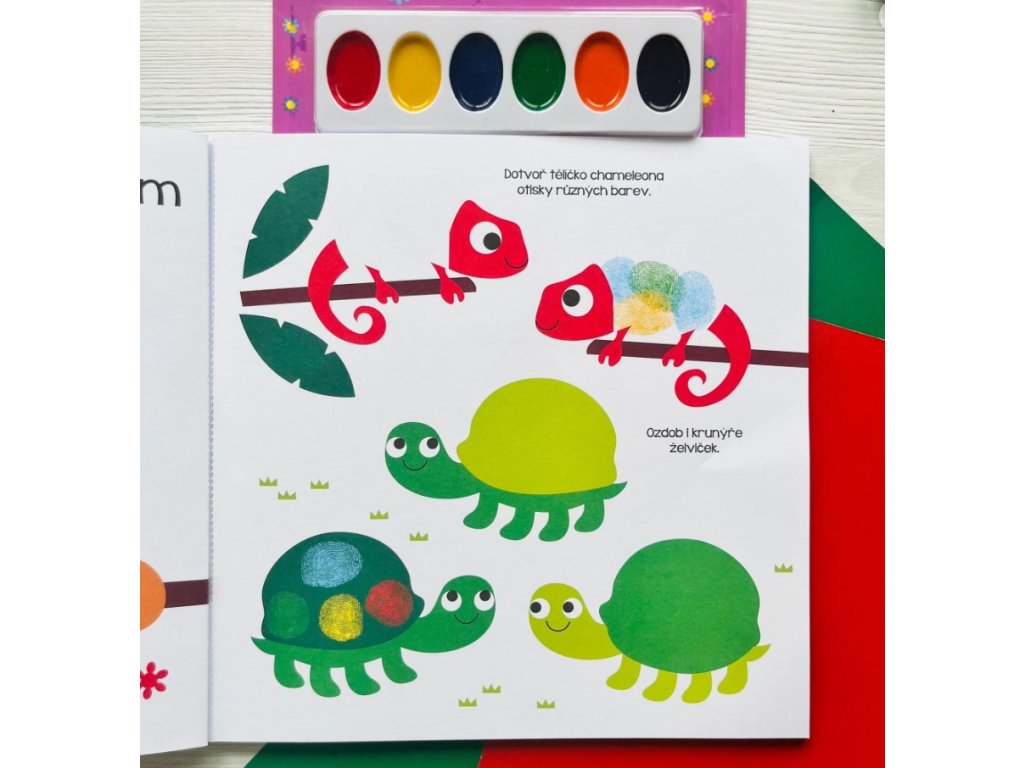 pokud chce použít jinou barvu, otře si zabarvený prstík vlhkým hadříkem