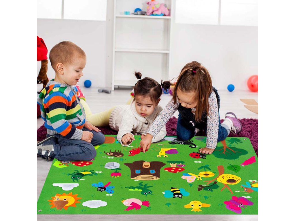 Pomozte svým batolatům prozkoumat tajemství na louce se sadou plstěných desek! Tato kreativní aktivita umožňuje dětem používat svou představivost a rozvíjet své verbální dovednosti vytvářením vlastních vět a příběhů. Je to skvělý dárek pro děti ve věku 3+ a pomáhá jim zdokonalit jejich ruční schopnosti.